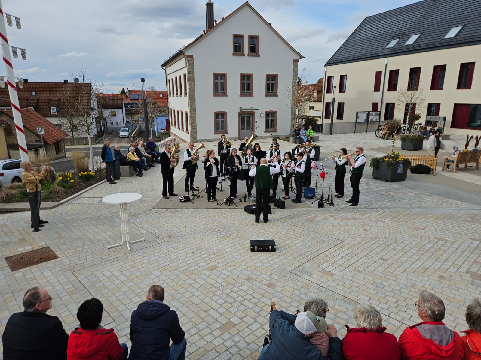 Am Ostersonntag, dem 05. April 2026, erlebte der Rathausplatz in Waldbüttelbrunn einen besonderen musikalischen Moment: Die Blaskapelle Waldbüttelbrunn lud um 17:00 Uhr zu einem spontanen Popup‑Konzert ein und traf damit genau den richtigen Ton. Begünstigt durch die ersten warmen Sonnenstrahlen des Jahres und die festliche Stimmung des Osterfeiertags entwickelte sich das Konzert rasch zu einem Treffpunkt für Jung und Alt. Ohne großen organisatorischen Aufwand, dafür mit umso mehr Spielfreude, verwandelte sich der Rathausplatz für gut eine Stunde in eine lebendige Open-Air‑Bühne.